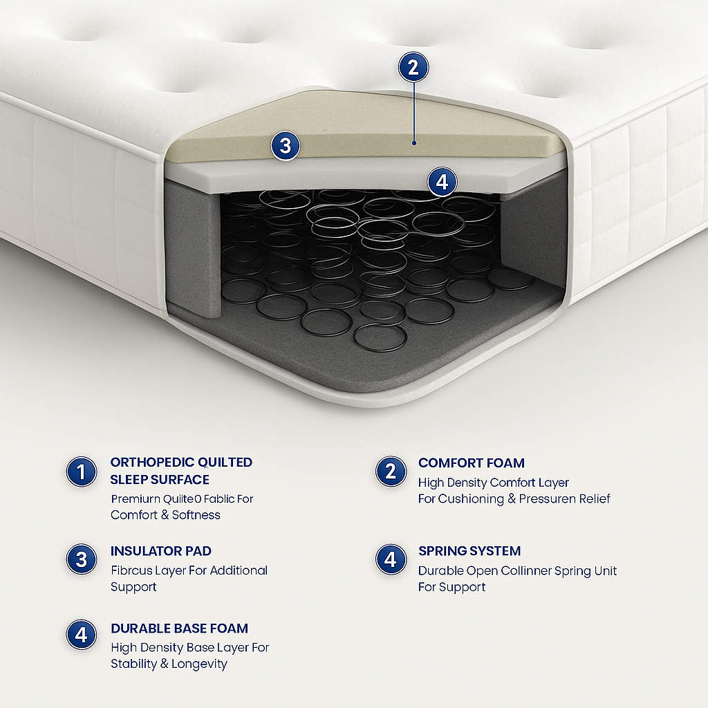 ✔ High-density foam & reinforced coils – Reduces pressure points while keeping the spine neutral.